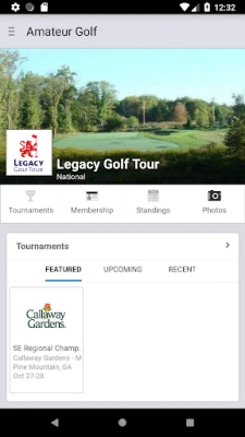 Key Features: - Find and follow the best amateur golf programs. - Register for membership and tournaments. - Check in to Amateur events and access hole locations, yardage book and GPS distances while you play. - View tournament information and leaderboards. - Follow Season Standings and Stats.