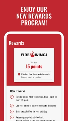 With over 20 wing flavors, Fire Wings is your one-stop shop to wing heaven. Use our app for pick-up, delivery, and to earn rewards on all orders. Rewards are built right in, so you’ll earn points towards future orders right away.