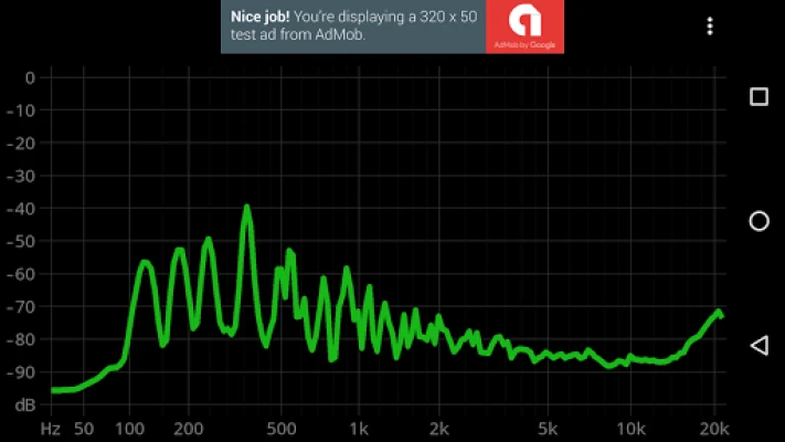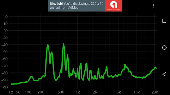 This real-time spectrum analyzer (RTA) / audio visualizer features: - 176 high-quality frequency bands [20Hz to 22kHz] - Logarithmic frequency scale to match human perception - Low latency for high responsiveness - High frame rate to see smooth frequency and amplitude movements - Low battery drain due to high performance native code - Fast graphics using OpenGL ES 2.0 - FFT window size 4096 @ 60 frames per second