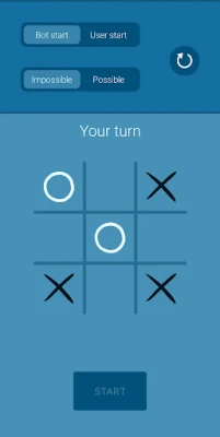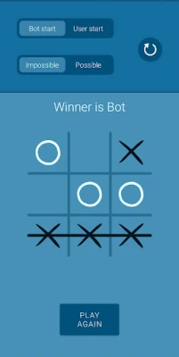You play the game against the AI on a 3x3 board. You can make the first move or you can choose to let AI make the first move in the game. There are two difficulty options in the game, Impossible and Possible.