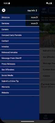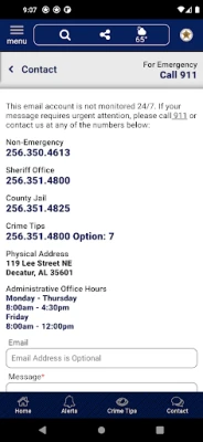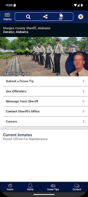 The app has public information for press releases, inmates, most wanted, sex offenders, and special alerts. Crime tips and contact us messages can be sent to the Sheriff's Office.