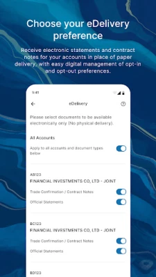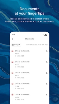 • View and download your monthly statements, trade confirmations, contract notes and other documents made available to you on this application at your convenience.