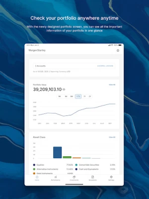 • Comprehensive view of your portfolio summary, holdings, transactions, performance, documents, as well as research materials from Morgan Stanley (3).