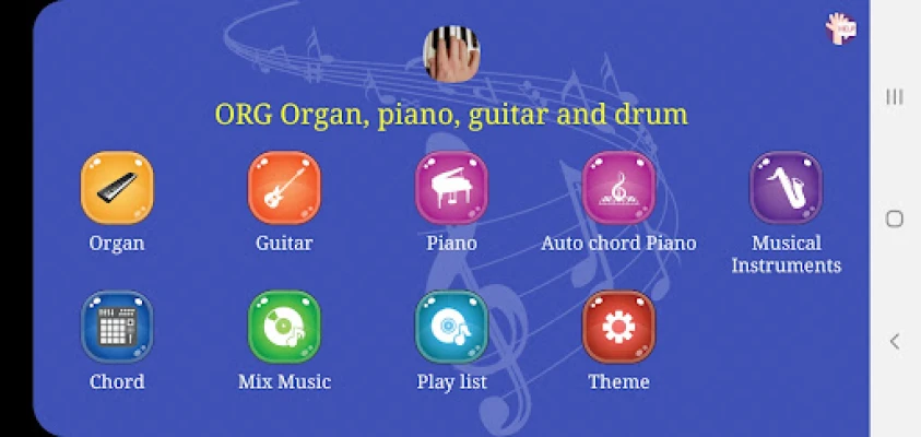 "ORG Organ, piano, gitar & drum pad" has a full range of chord modes that allow you to play and record while playing and singing along with your favorite tunes.