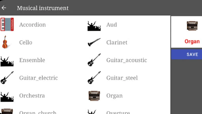 Tiện ích của "ORG Organ, piano, gitar & drum pad":