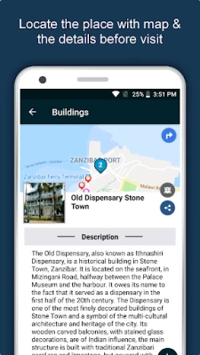 Apart from this, Tanzania Travel & Explore guides you Why, When and How to visit various places in Tanzania with precise location on the detailed Map. There are three ways to explore this app - Category view, City view and EduBank favorite places view. Pin your destinations and get the routes on the Map. Not only this, you can see exactly how the places look like with Street View integrated in this app. The app also has a feature to Rate and write Review/Experience regarding entity(s) through Login. Your Travel experience and rating will help the user community.