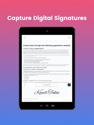 You can change the visitor sign-in flows, customize questionnaire, capture visitor digital signatures, take visitor photos, print ID badges and more.