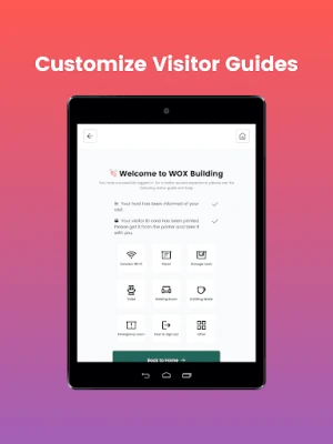 WOX Visitors kiosk, together with our management portal and employee App solution, simplifies visitors sign-ins and management. It is flexible, you can customize everything. It is powerful, and it is easy to setup!