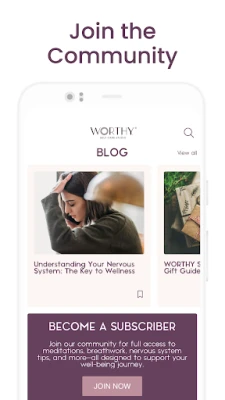 Join the Worthy community today with a monthly or annual subscription and unlock unlimited access to expert-guided meditations, breathwork exercises, affirmations, tapping tutorials, and more. Whether you’re just starting your self-care journey or deepening your practice, the Worthy subscription is your gateway to personalized growth, balance, and transformation. You are Worthy—download the app and subscribe now!